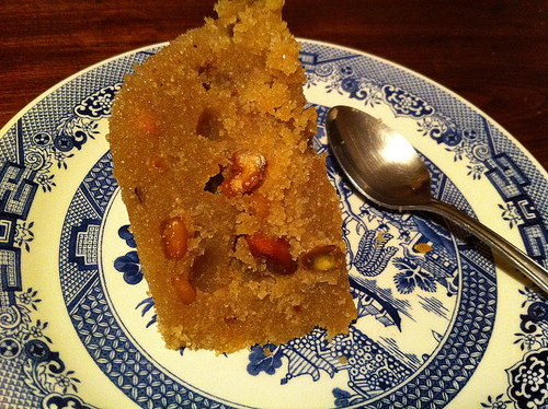 “I am so sorry for your loss,” Hacivad remarked with quiet aplomb as Karagöz harps “I hope the neighbors made a good helva for the family,” to which Hacivad just rolls his eyes and scoffs, “another rude utterance from this fool.” For once, I actually know what Karagöz is talking about, my boyfriend loves funeral helva, and explained how his grandmother used to make it. We tried it in a restaurant here, the flour transformed into moist, sugary, buttery crumbs more like a sweet couscous than anything else I could think of.