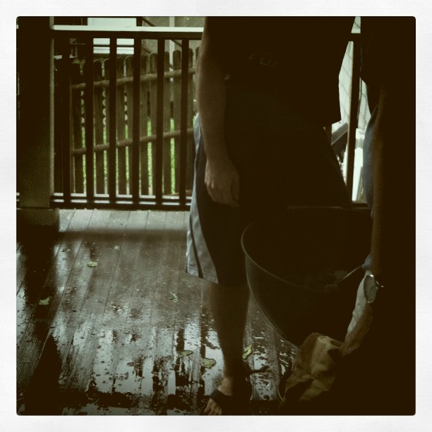 I joked with friends the day before, that it was perhaps cross-cultural differences that had driven our hurricane-preparedness response as a couple. Me, the intrepid Yankee who has lived through several major storms in her life, went straight for the candles, batteries, flashlights, canned food, water and packaged milk. I planned a few days worth of menus that could be kept out of the fridge (aka meat and dairy free) so that they would not spoil. As the grilling was going on outside, the kitchen was set, with great big bowls of handmade pasta pesto and zuccini, smoked paprika and lemon potato salad and sesame-soy buckwheat noodles with cilantro and shredded vegetables along with garlic-sauteed tofu. After seeing that all of my hurricane-proof food was in order, supervised by the pleasant and pleased tut-tutting and cluck-clucking of Kenne and Khadijah, who fully approved of my efforts as the matron of the home, I checked to make sure the basement still had no water coming in. So far, so good, dry as a bone.