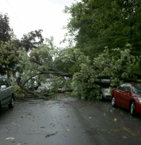 If the sound of shivering could be made into sound, that was what was emanating from my purse as the chorus of little dancing lady puppets huddled together upon hearing the sound of the tropical storm outside. “Will we,” one meek voice ventured, “blow away if you go outside? Is the story of Chicken Little right, that the sky IS falling?” The night was Sunday, the date was 2011 and the place was New England. Hurricane Irene had hit, and while her hit was strong yet under-whelming in the form of damage in our area of New England, others were hit very hard. We were lucky, I learned the next day. Large, ancient trees were down all over the neighborhood, loosened by the extra rain of the summer and the intense winds.