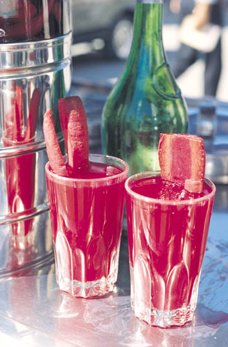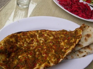 Can you say “pucker up, anyone?” Şalgam Suyu is served cold with kebabs or cig kofte (“sig-cough-teh”) which is a delicacy (see the photo – that is kofte made with raw meat).