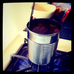 Here, Kenne is shuddering and spluttering in angry horror at the evils of heating up one's dinner in the can in which it was packaged - M.'s specialty since his stint in the Turkish army. Oh, that's right, you can't see Kenne as she is an imaginary puppet in my head. Right.