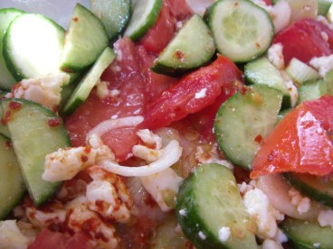 A delicious Çoban Salatası that Hacivad Bey "helped" to prepare by whispering in my ear as I chopped the sebze, peynir and squeezed the limon. (Image from my own collection)