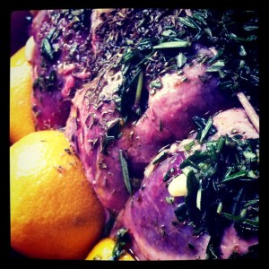 The lamb, marinating in kekik, rosemary, lemon, garlic and apple-wood smoked salt (with a few tears for good measure, unfortunately)