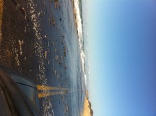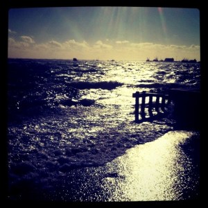Feeling the pull, I quickly slipped out to the door. When we reached the beach across the street, the waves were furious, white-capped and frothy in their fervor, my dog wanted none of it. The air was invigorating – wild and wooly and wet and free and I felt as great as the sparkles all around me.