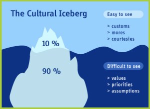 So, here we have it – M. and I in the car, in the morning, pre-caffeine, debating the far-reaching fingers of cool censorship and oppression and how it may or may not be infiltrating our life in New England. So, that iceberg that the car was grating on as we drove through the city? Refer to the above graphic which suggests that 10% alone is visible. Today, my image of that iceberg was one that was bobbing up and down in the waters of our relationship in the context of the world. So, cultural customs are showing (albeit unclear from the fog at times) and the need for cultural courtesies are abundantly clear (e.g. Turkish cultural mores in the current political environment there re: not insulting the Turkish state). However, the glimpses I am catching of the underwater portion of hte iceberg are harder to identify, namely, the values, the priorities and the assumptions – they are down there swimming with the diving ducks in M.’s story, I suppose. I wonder when one of those diving ducks may surface to show me sliver more about the iceberg matter underneath – values, priorities and assumptions as they relate to speaking my mind and how to handle that.