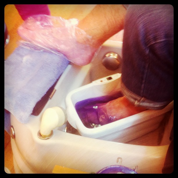 Yesterday, when we awoke, M. was getting ready to walk our dog, which he does every morning on the early side, and complained that his feet were really hurting. His heels were cracked and dry despite his best efforts to take care of them, and he was in pain. “I know what you need,” I said without thinking much, “you need a paraffin wax pedicure, that will help a lot!” I sort of heard the shock and awe of my statement make its impact like a tsunami on the little chorus of dancing lady puppets, but before I could even think about that, M. responded without much thought at all by saying, “sure, good idea, let’s go today, we can do it together.”