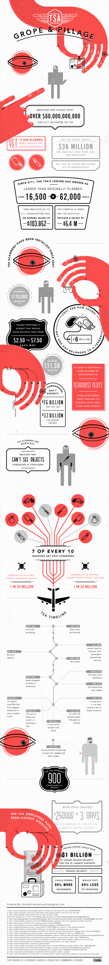 So there I was, waiting for the plane to load, trying not to think all about this as I was squeezed in between two businesspeople of corpulent proportions, the puppets politely indicating their protest with not-so-subtle jabs, I willed myself away into the world of my iPhone and found this image about the infamous, inimitable and I suppose I must admit, somewhat necessary TSA despite all of my whinging. I cannot attest to the veracity of the facts therein, but wanted to share it with you, care of the scintillating blog Life of Refinement.