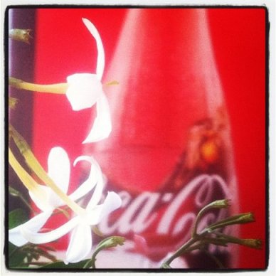 As I heard our number being called, I followed M. into the majestically modern rounded-cement office space, trying not to trip up the steps as my two puppet accompanist of the day were engaged in a red and white tug of war that was producing an increasingly dizzy swarm of jasmine blossom remnants and Coca-Cola drops the harder they pulled. I let the battle play out in my mind without analysis or stop attempt – and commenced observing M. bargain for the change in our tickets.