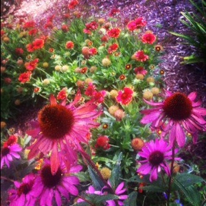 Esma the hippie puppet never made it into the fairgrounds of the Truro Ag Fair – she fell in love with this little side garden on the way in – and decided to commune with the purple and pink blossoms until we made our way home…