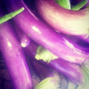 Safiye Rakkase, the vainglorious dancing girl puppet, loved these undulating asian eggplant – and began to do interpretive slide dances on this pile of them while Yehuda Rebbe and Hacivad Bey debated whether they would have more or less seeds than the standard American supermarket eggplant – less being preferable in order to make Ali Nazik…