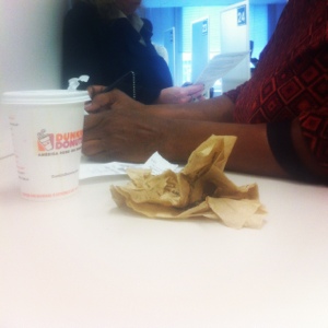 Before I could send a mental telegram to my manners puppet, my new real-world friend and waiting companion, Kenne was in for the biggest shock of all. The animated southern lady downed her Dunkin’ Donuts coffee and announced – “You know why I got this small coffee, right? It helps you do the poo – and I gotta go – y’all know where the bathroom is?”