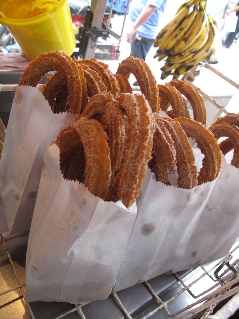 Observing neon turkuaz parrots along the way, we worked on muscles heretofore unknown and one and a half hours later, ended up in front of a place we had heard of from the local workers in our hotel – El Camello. Fearing we were lost at one point, I broke out my dusty Spanish to ask directions of a lady about my age who was peddling churros on her bicycle. Churros, in case you do not know, are a delicious fried sweet treat.
