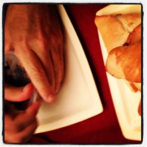 Hitting the “easy button” Turkish-American style, olives and ıspanaklı poğaça for supper on the fly (image by Liz Cameron)