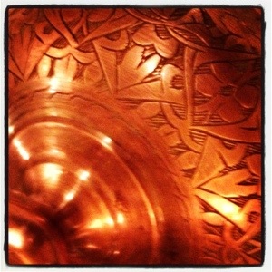 There in Cafe Mangal, we see familiar things, so we miss home little bit, but ignore that and eat lots. Big copper Ottoman Mangal in corner for making kahve & keeping warm – M’lady not even know what is that – M tell her right there! She need much more know Ottoman history and stuff, shameful, we must whisper in her ear nighttime! Anyway, we sneak iPhone take close ups of pretty copper. Must be from Gaziantep, we visit and remember “tink tink tink” sound of coppersmiths.