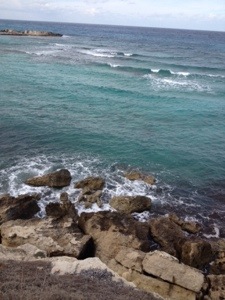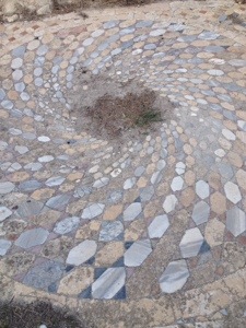 Esma, the hippie puppet is too busy meditating to the crash of waves in the center of the ruin next to our room – she had a hard time choosing which amazing mosaic tile floor to choose for her sitting session!