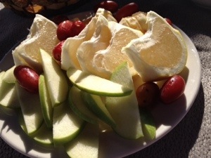 Dessert was a plate of the freshes grapefruit, apple and new dates. It was all we could do not to fall down on the lawn of the restaurant and take a nap. Luckily, Mustafa Bey pointed us in the direction of his nephew’s small hotel in exactly the most western town in Northern Cyprus – and we headed off for a nap. More on that later!